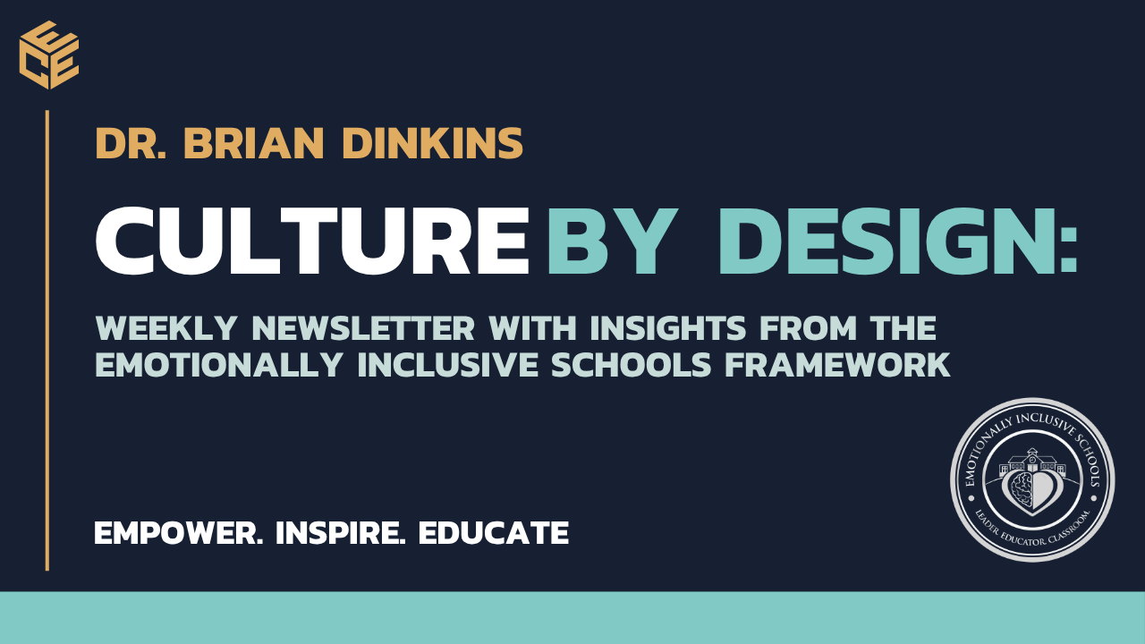 School culture doesn't improve by accident. It improves by design. Culture by Design is a weekly newsletter from Dr. Brian Dinkins — CEO of the Center for Empowering Education and creator of the Emotionally Inclusive Schools™ framework, built for every adult who shapes school culture: principals, assistant principals, teachers, instructional coaches, counselors, behavior specialists, and school support staff.